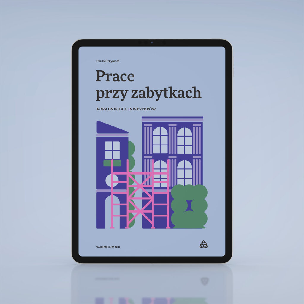 Paula Drzymała, „Prace przy zabytkach. Poradnik dla inwestorów”, Narodowy Instytut Dziedzictwa, seria Vademecum NID.